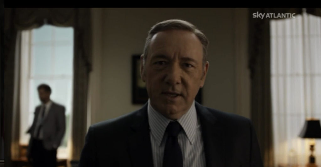 Francis Underwood in House of Cards, capitolo 31 diretto da James Foley, scritto da Kenneth Lin (2015), con Kevin Spacey